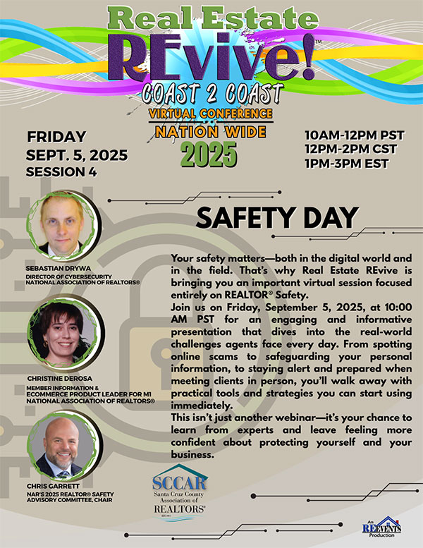 05 Sep REALTOR Safety Day REALTOR Safety Day Friday, September 5, 2025 (10:00 AM to 12:00 PM) Virtual Details You're Registered! DescriptionLocation Virtual